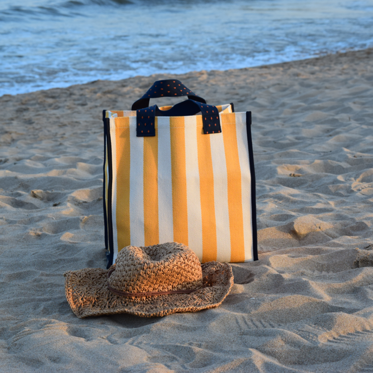 Large-Capacity Stripe Canvas Handbag Women Bag Simple Supermarket