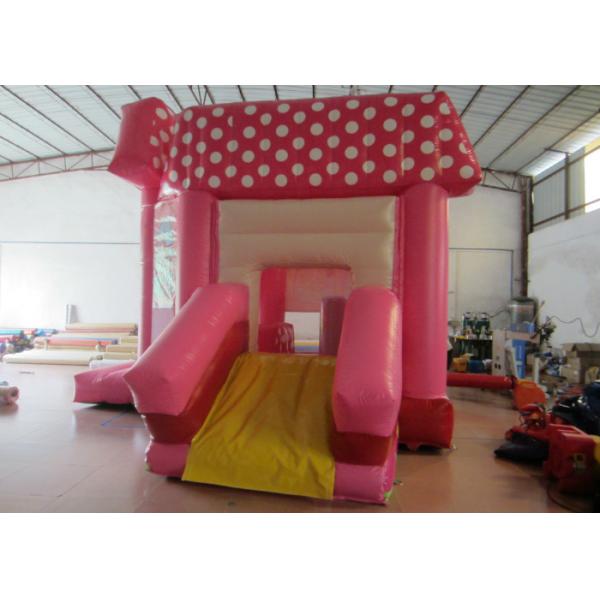 inflatable Pink princess bouncy house castle, it's the house model, big,top and wide jumping area,it has the pink house, girls will love it very much. lovely inflatable pink bouncy house for sale, it will allows 8-12 children to play at one time.