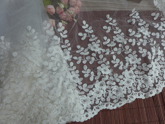 White 29cm width Lace Trim Vantage Lace Embroidered Floral Nylon Mesh Trim Lace chosen natural, pollution-free, high-quality materials.