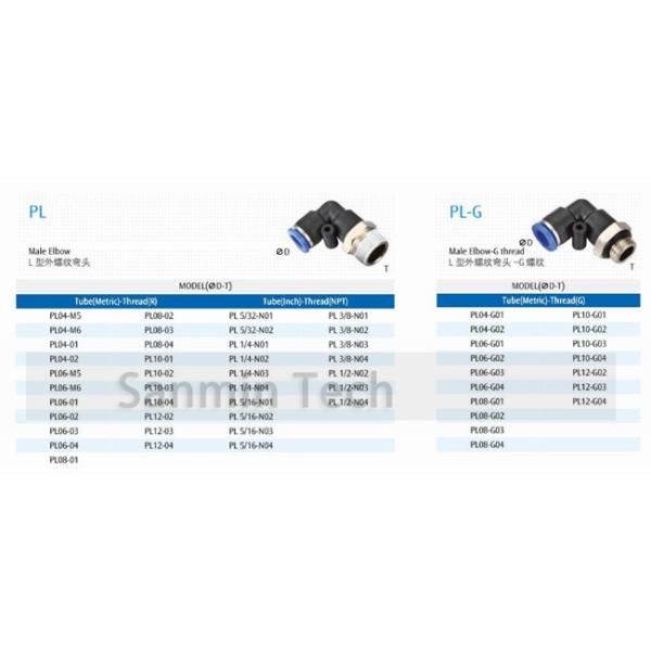 PL Plastic Pneumatic Parts Push In Air Male Elbow Fitting Quick Connect Components Sanmin