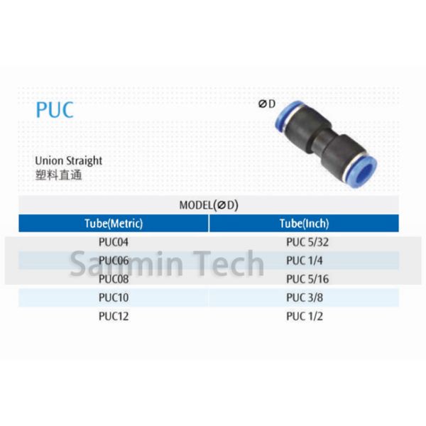 PUC Type Pneumatic Fitting Air Plastic Fitting Tube Fitting Connector Compressor Tube Union Straight Sanmin
