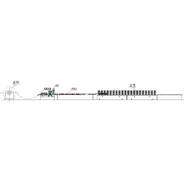 With 15 sets of roller stations, it can process material of 1.0-1.5mm thickness. Combine with a decoiler, cutting and punching unit, an auto line can be provided for three different sizes of blades with different coil width.