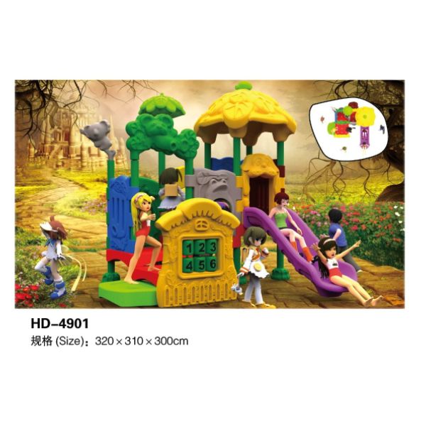 | Materials | a.Plastic parts: UV Resistance LLDPE b.Post: Galvanized steel pipe c.Metals: Galvanized steel d.Deck, stair, bridge: Steel with plastic covered e.Fasteners: 304 Stainless f.Roof: AL alloy ( Different material is available at your demand ) |