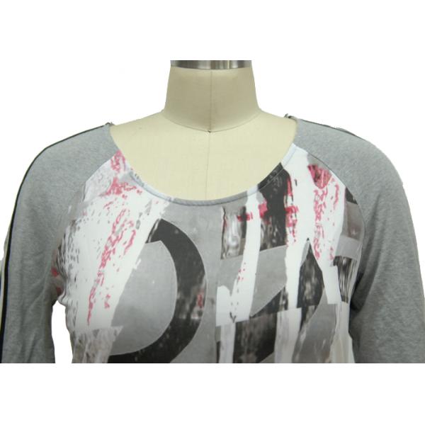 New Women 3/4 Raglan Sleeves Shirt Piping At Sleeves Side Placement Print Casual Top