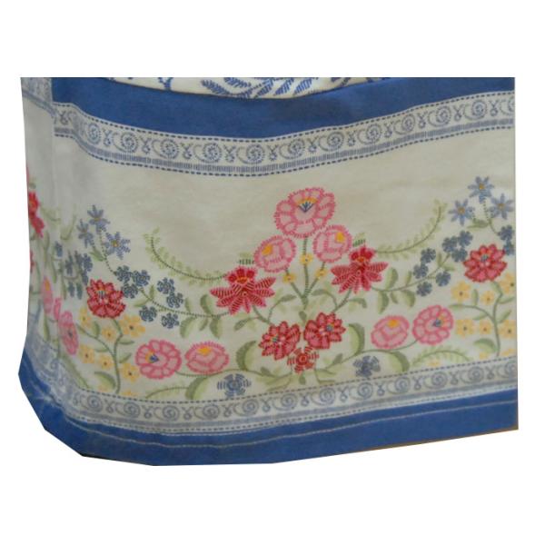 In front of the large area of embroidery