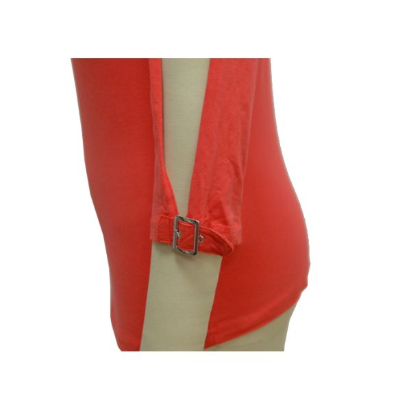 Ladies Casual Wear 95%Cotton 5%Spandex Jersey Round Neck Long Sleeves Slit Shoulder Loop Shirt