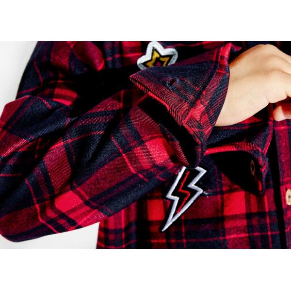 Boys Long Sleeve Blouse, Checked Woven Fabric Kids Polo Shirt ,Placement Print &Application