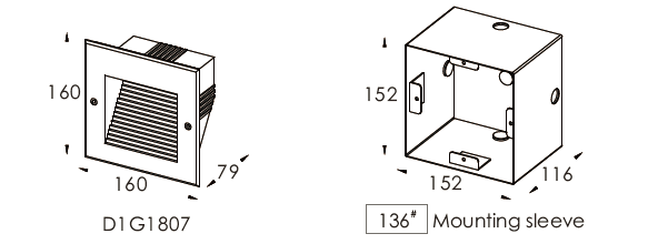 | Mounting sleeve: | D1G1807: Zinc-coated steel 136# D1I2007,D1I2407:PVC 081# |