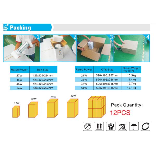 | Length | 268*151*93mm (E27 base) ; 276*151*93mm (E40 base) |