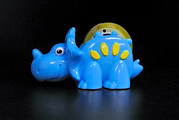 This is a triceratops figure. It has a big horn on its nose. It is not only a toy but a cutter. You can put the tape into the toy. When you need some tapes, you can use it to cut . It can give you any length you want. It is a good sample to introduce the history about triceratops. It is a tool as well. There is a gap on the figure’s back and you can put a tape in it so that it is convenient to use the tape.