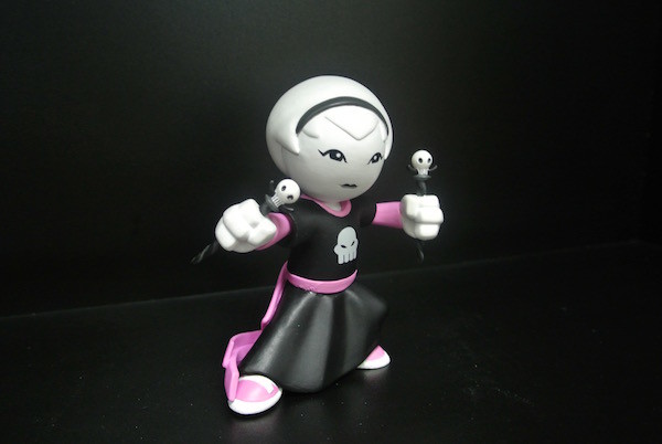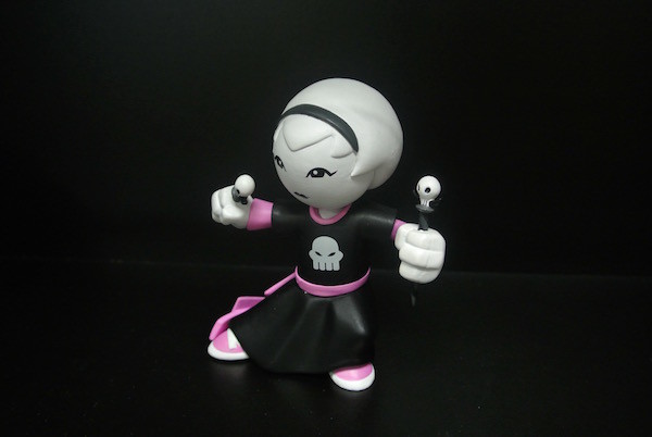 This figure Rose is a work of art instead of a toy. The design is from happy worker's product. It is suitable for ages 15 and up. Her weapon are two nails with the skull on it. Her head and two arms can move. Its material is PVC. It is mainly for collection, so it is suitable for collection figure lovers. And also this product can decorate your home.