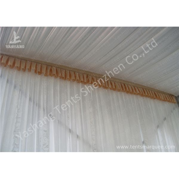 The A-frame aluminum tent with the white uv-resistant and flame-retardant pvc fabric shapes a beautiful scenery in the local environment. As what you see from the picture, the aluminum outdoor event tent is equipped with transparent arch windows, which not only beautifies the appearance, but also luminates the interior space. The local temperature is rather high, holding events in the white fabric tent is comfortable and cool as the pvc fabric offers a shelter for you.
