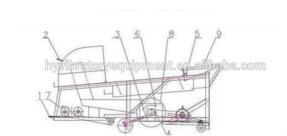There are three layers of sieve bottom of this machine. At first,the front screen will sort out the dust and samilar impurities. Then the main fan will select at last part. After the grains finished cleaning, it will be casted out by Grain Casting Machine to realise sort out the stone and mildew grains. This machine also solves the question of feeding grains after screened. First layer is for the big impurity, second layer for small impurity, three layer is for half a grain, and fourth layer for sand etc.