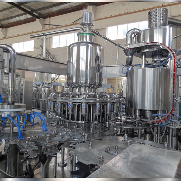 Rinsing: The rinser clutches bottles from the starwheel, holding bottles by their necks. gradually turn them upside down while rotating, It will send the bottles to the rinsing area where spraying water come from up above, washing bottles throughly.small juice filling machine