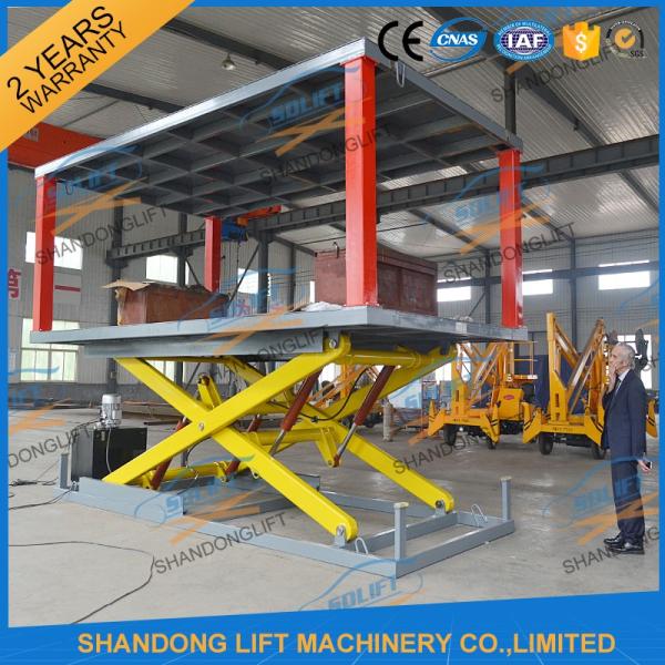 The Hydraulic car scissor lift priority with different levels, suitable for car moving between stairs, from basement to first floor, or to second floor.