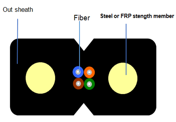 3· Strength member at both side use as metal or FRP,outer jacket is PVC or LSZH