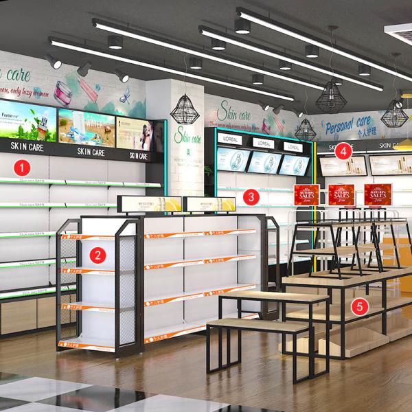 Product Name | Makeup store display metal frame wall shelf design for cosmetic showcase with light box |