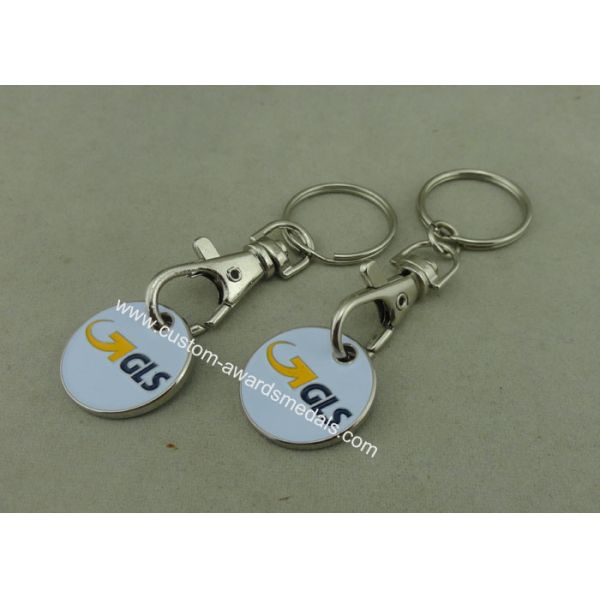 Iron Trolley Token , Die Stamped Key Chain With Soft Enamel Shopping Coin