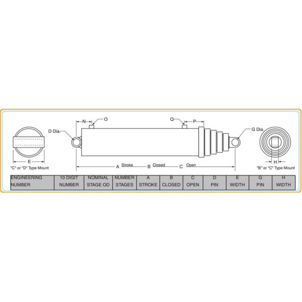 | Parker | Model No. | First Stage Diam | Stage | Stroke(A) | Closed Length(B) | Open Length(C) |