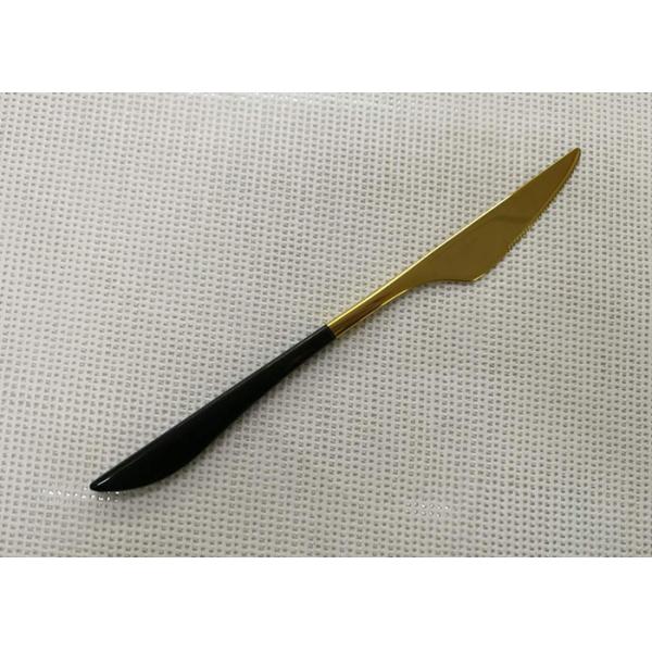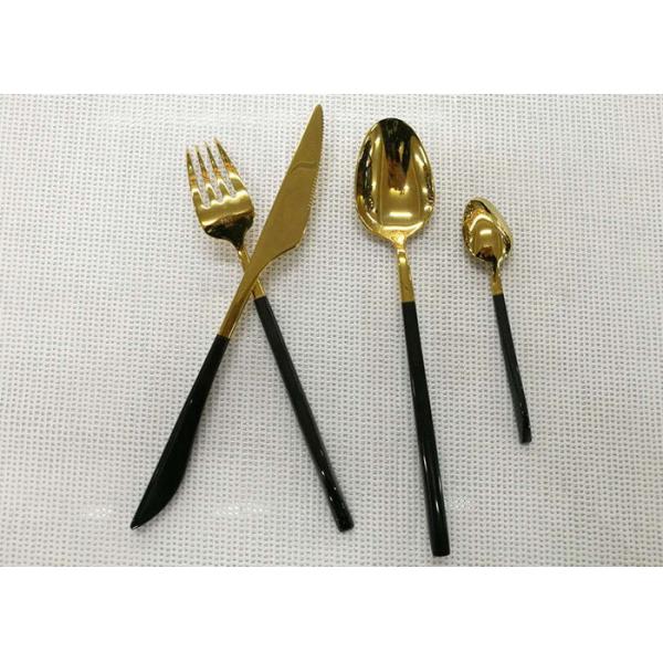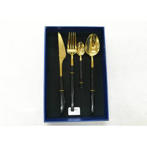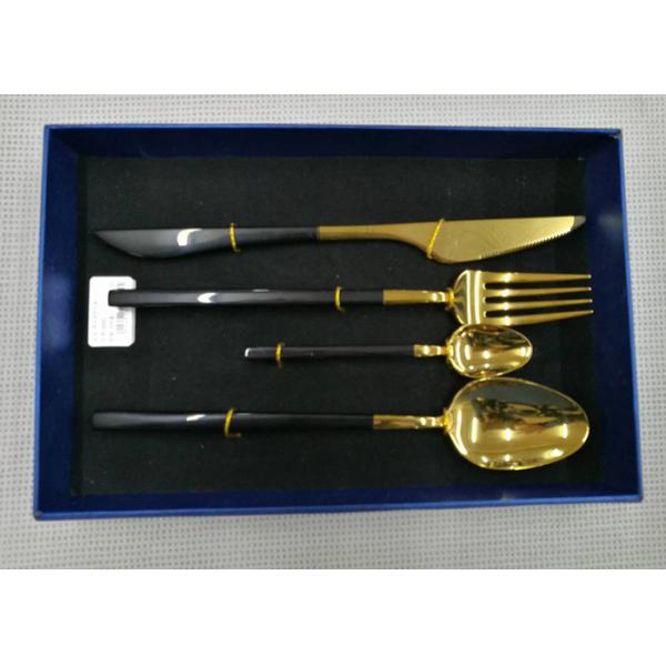 Color-plated Stainless Steel Flatware Sets of 4 Pieces Black Handles Gold Heads