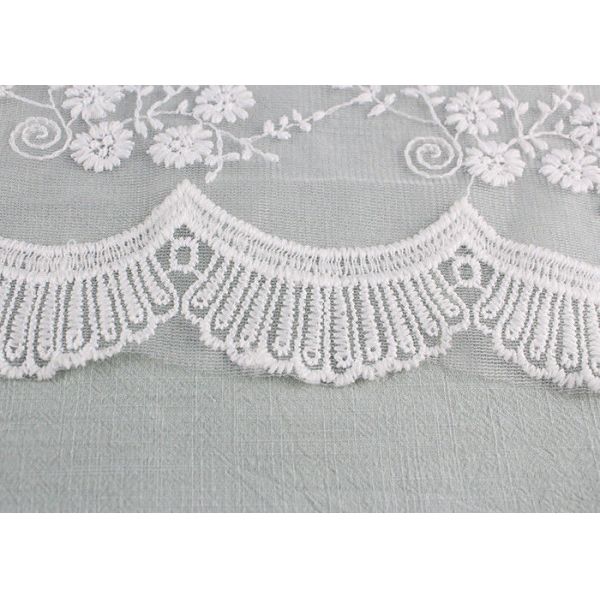 Floral Embroidery Bridal Scalloped Edges Lace Fabric For Off White Wedding Gowns