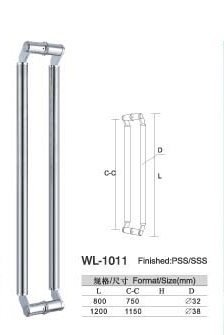 WL-1011 chrome Stainless Steelentry door handles set L800 L1200 Round glass door handle pull and push