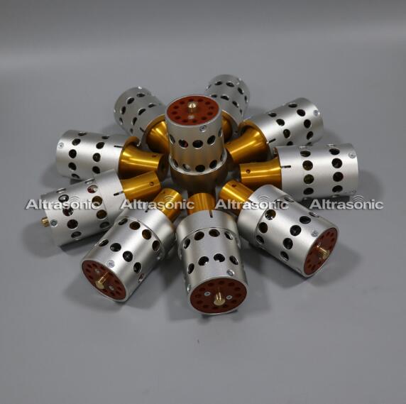 The transducer converts high-frequency electrical energy into high-frequency mechanical vibrations. And it contains several piezoelectric ceramic discs sandwiched under pressure between two metal blocks. Between each disc is a thin metal plate, which forms the electrode. When a sinusoidal electrical signal is fed to the transducer via the electrodes, the discs expand and contract, producing axial vibrations.