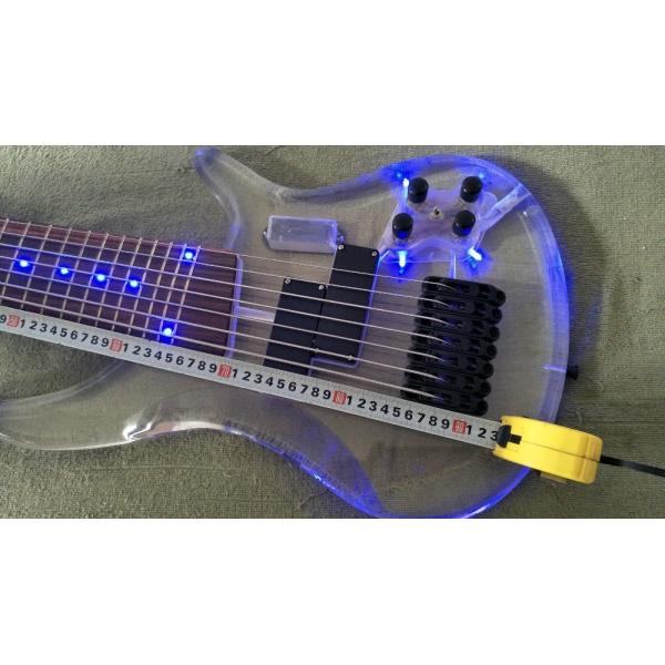 | Guitar Name: | 7 Strings Bass Guitar Limited Edition Clear Acrylic Body Rosewood fingerboard inlay Blue LED lamp Electric Bass Guitar |
