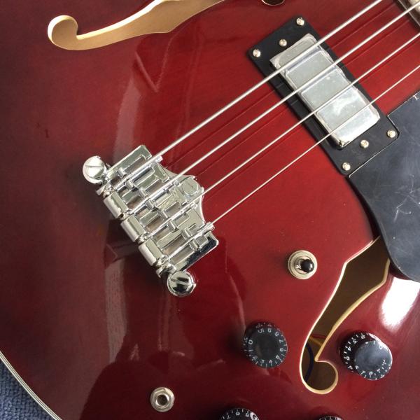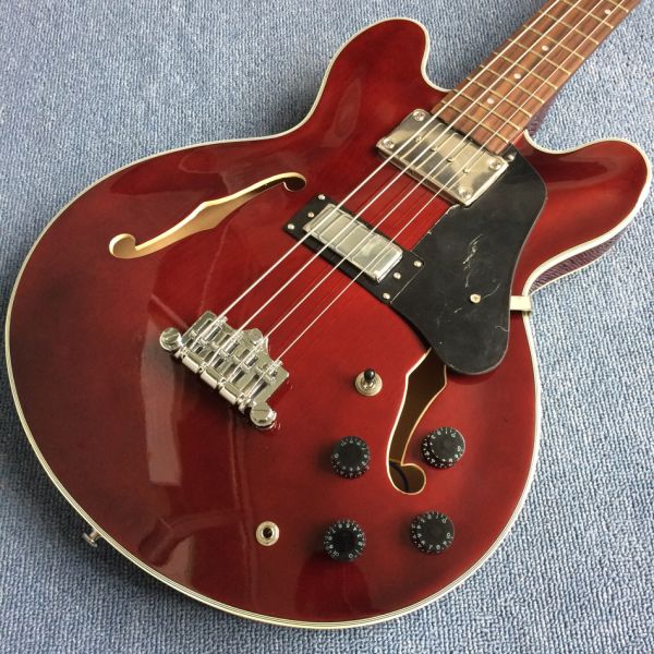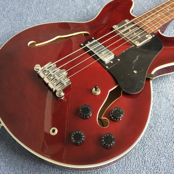 | Guitar Name: | New style high-quality hollow body electric guitar 4 string bass, Double F holes, Wine red body |