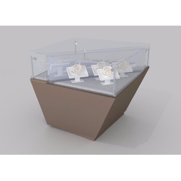 Modern Glass Display Cabinets With Brown Display Plinth For Jewelry Shop Display