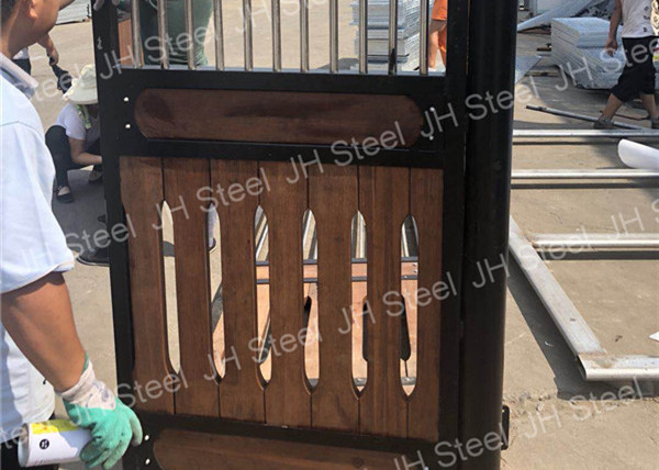 | Advantage | Full welds will make sure the stalls are strong and durable. No sharp edges promise the people and horse safe. Yoke door allows horses place his head outside. Powder Coated Finish: We can PC any color you like. Say, Black Color, Blue Color, Hunter Green color, etc. Assembly easily: use heavy duty bolts or different way connector to connect together. |