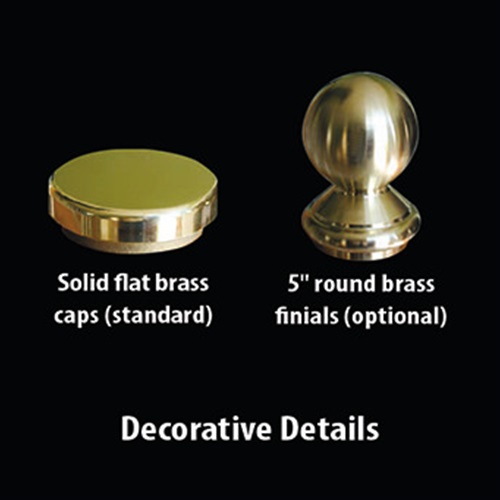 This stall front comes standard with a grilled feed door, flat brass caps and brass plunger knob on the door. An optional solid framed door is also available and brass caps can be upgrades to brass finials.