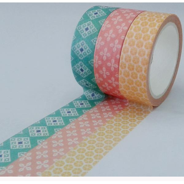 Washi paper tape uses rice paper as the backing material, which is coated with rubber type adhesive. Applicable to different temperature resistance with cleaner removal. Washi paper tape is used for fixing resistors, capacitors, masking and automobile industry in the process of spray-painting. Colorful and cute design, Washi paper tape can be torn by hand ,no adhesive residue. The tape can be used on paper, objects and walls, use it for card crafting, gift box wrapping, scrapbooking, home decoration, DIY handcraft and much more!