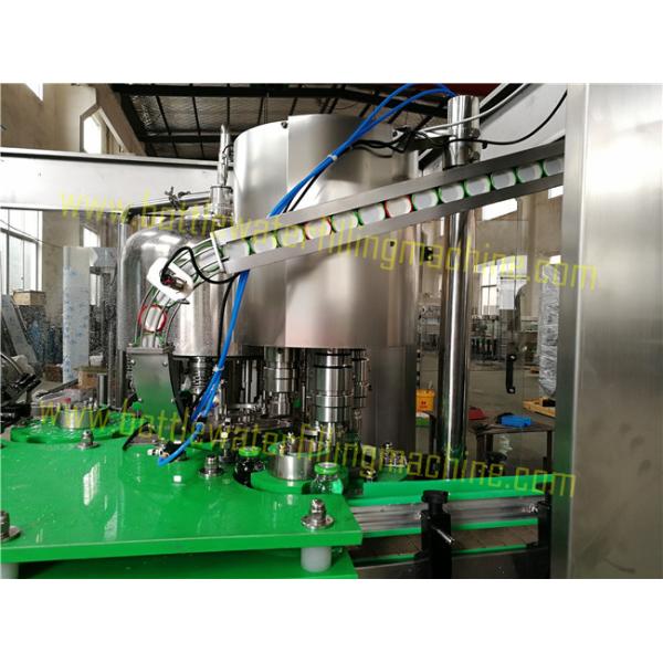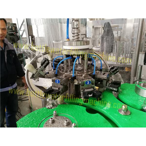 This machine is for glass bottle beverage production, it is a monoblock one, integrates rising filling and capping 3 function in one unit. it's rough capacity is about 3000B/H (for 500ml glass bottle). It adopt normal pressure filling, suitable for non-carbonated beverage, like water, juice, tea, milk and so on.