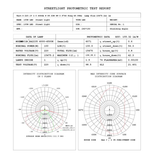 100w High Lumen Led Street Light With Bridgelux Chip , Meanwell Driver