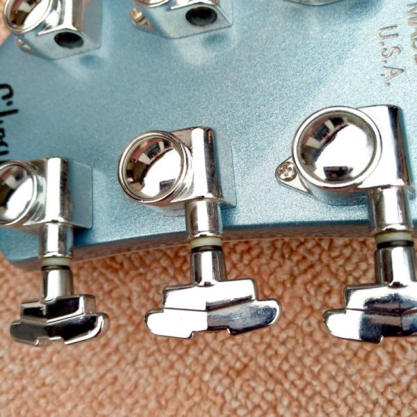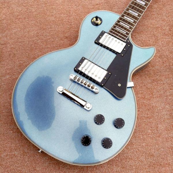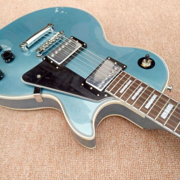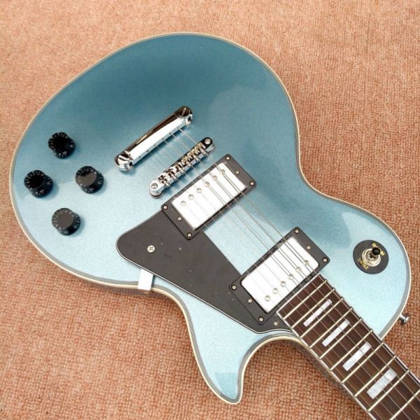 Custom LP electric guitar, metallic blue, chrome hardware: