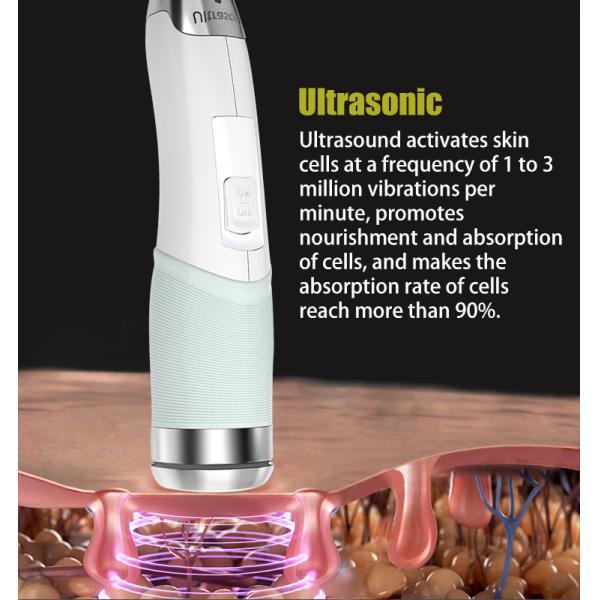![]() | ULTRASONIC INTRODUCTIONS Ultrasound activates skin cells at a frequency of 1 to 3 million vibrations per minutes,promotes nourishment and absorption of cells and makes the absorption rate of cells reach more than 90% |