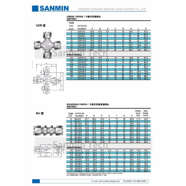UCR Union Cross Stainless Steel SS316L Tube Fittings Plumbing Fitting Pneumatic Air Fitting High Quality Sanmin