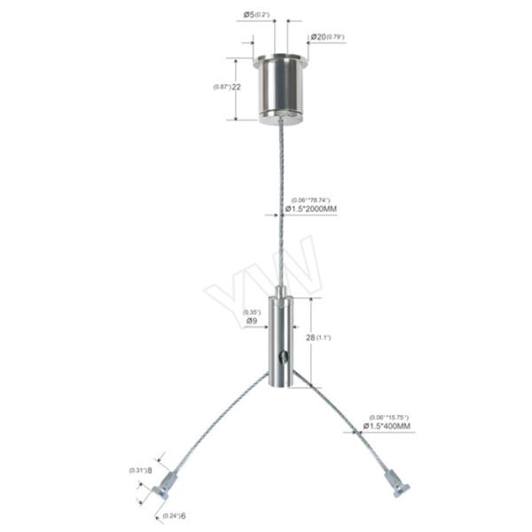 Y - Cable Size : Ø0.06″ *15.75″ / (Ø1.5mm *400mm)
