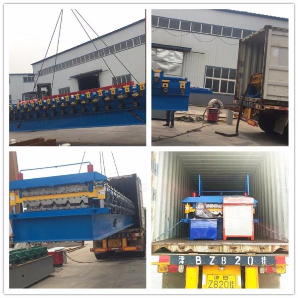 roofibg sheet, make coil inside in case the roller and shaft got rusty. Steel wire fix the machine into the container, in case any damage when shaking on the sea. The machine is put near the container door, then the customer can take out the machine easily |