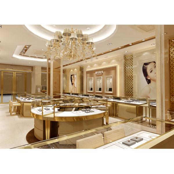 | Product Name | Fully - Assemble Gold Metal S / S Wooden Fixture Showroom Display For Jewelry | MOQ | 1 set |