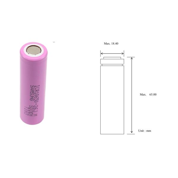 | SDI Lithium Ion Battery INR18650 26JM | Samsung 3.7V 2600mAh 26J1 Battery Specification |