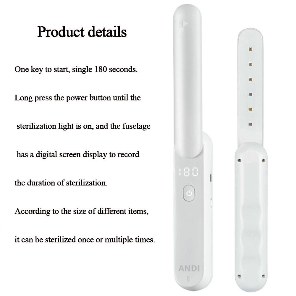 Hot sale portable Hand held UV led light USB charging ultraviolet disinfection lamp DLLI-6UVC-01