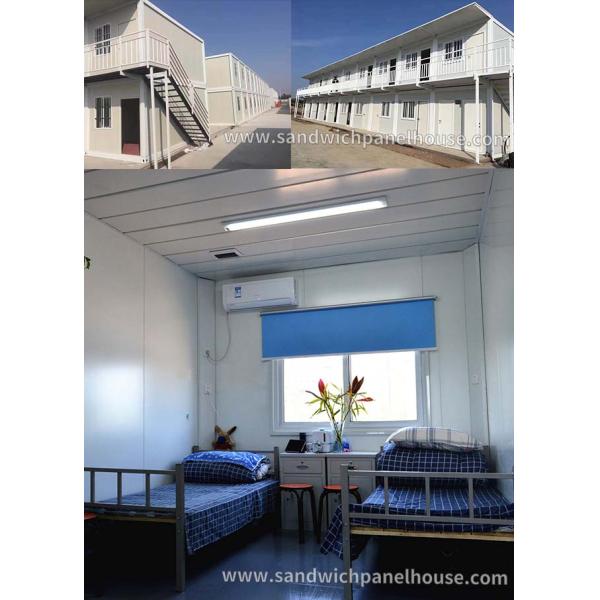 Prefabricated Container Dormitory Portable Accommodation Building For Sale I. Product Introduction The portable container house is a kind of environment-friendly and economically movable house. It is with light steel as the skeleton, sandwich board as the enclosure material, standard module series as the space combination, bolt connection as the component, and new concept. Using Container house as dormitory has many characteristics: II. Product description