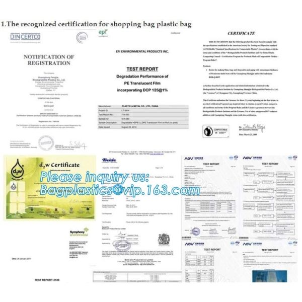 | 100%Biodegradable: | D2W, EPI, Corn starch |