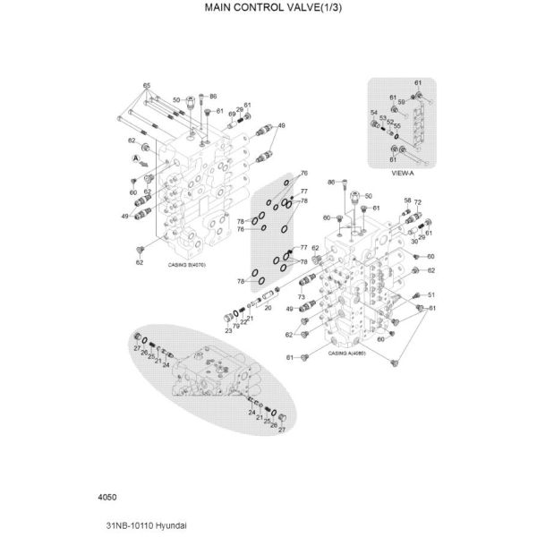 Belparts Hyundai control valve 31NB-10110 R455 R485 Main Control Valve