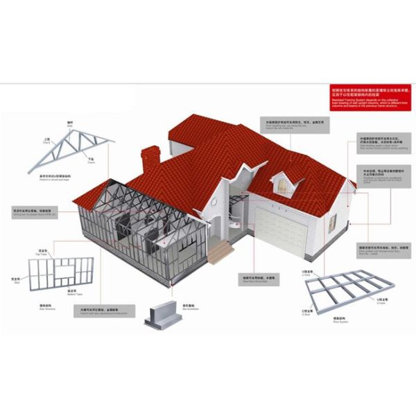 In cold rolled galvanized or SGLC steel as the main load-bearing structure,combined thermal insulation, sound insulation, waterproof, fire prevention. etc,built a functional diversity,energy conservation and environmental protection housing.The housing components can be all producted in factory,only assembly at the scene,is one of the more mature system of an integrated building.Also the developing direction of future residential construction.
