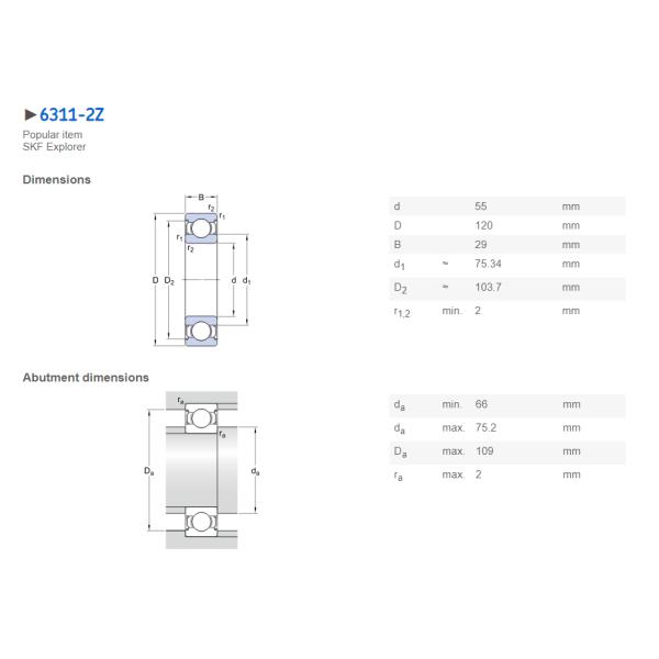 Double Seals 6311 2rs 2z Long Life Low Noise Bearings 55x120x29mm