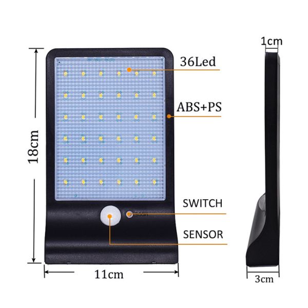 Hot sale High lumen Solar energy 36 LED Outdoor Solar wall lamp with sensor