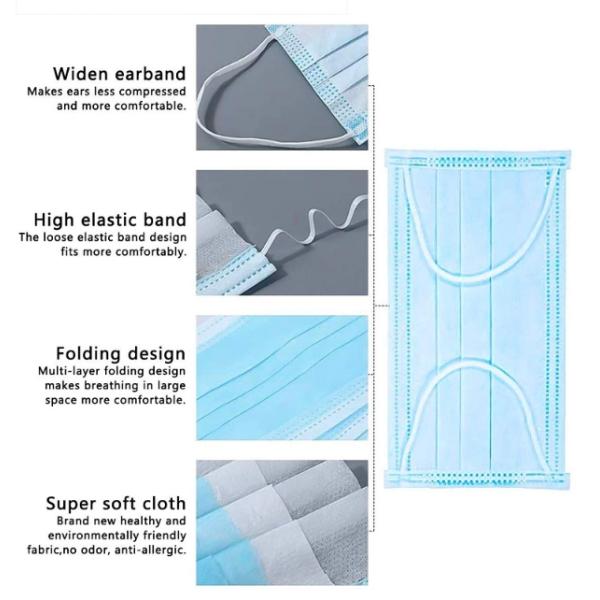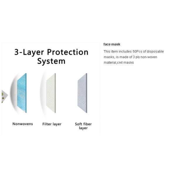 Disposable 3 Ply Non Woven Face With Adjustable Nose Piece CE FDA Certified